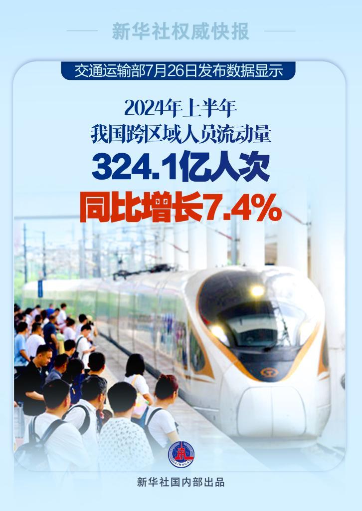 我国跨区域人员流动量324.1亿人次,同比增长7.4%