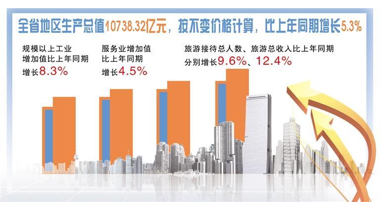 7月25日,记者从省政府新闻办召开的发布会上获悉,上半年全省地区生产总值10738.32亿元,按不变价格计算,比上年同期增长5.3%,经济运行总体平稳,回升向好态势得到巩固。