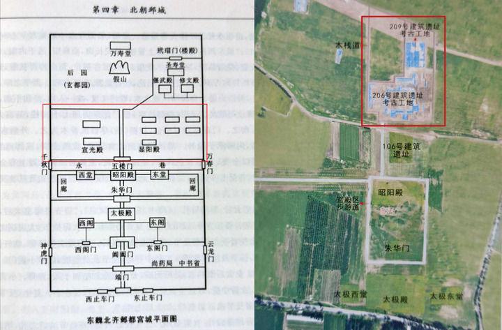 作为宫城后宫区中轴线上规模最大的两座建筑,考古人员认为206号和209号分别是皇帝和皇后的寝宫。邺南城帝后寝宫的名字史料上有记载,《邺中记》记载,“昭阳殿后有永巷,巷北有五楼门,门内则帝后宫嫔御所居之处也。其院分左右,左院之殿名显阳,右院之殿名宣光。”又有史料作东魏北齐邺都宫城平面图,显示“宣光殿在左,显阳殿在右”。因为有明确记载,之前有关资料都是将显阳殿与宣光殿左右并列,相关论者也据此进行研究讨论。
