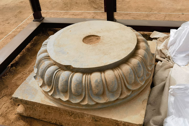 图为发掘于邺城遗址宫殿区206号大殿南侧的莲花覆盆础石。新华社记者 范世辉 摄