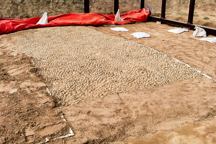 图为发掘于邺城遗址宫殿区206号大殿前的卵石甬道。记者 范世辉 摄