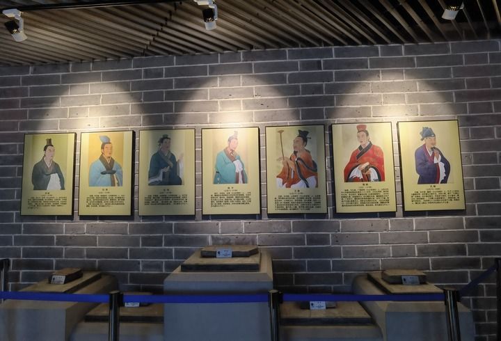 图为当地一展馆展出的“建安七子”画像及介绍。新华社记者 范世辉 摄