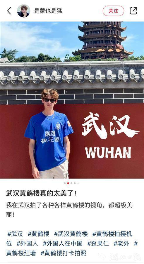 “我在武汉拍了各种视角的黄鹤楼,都超级美丽!”“第一次来武汉,东湖真的美到爆。”近期,中文社交平台上,来自法国、俄罗斯等外国游客纷纷晒出武汉的打卡照。