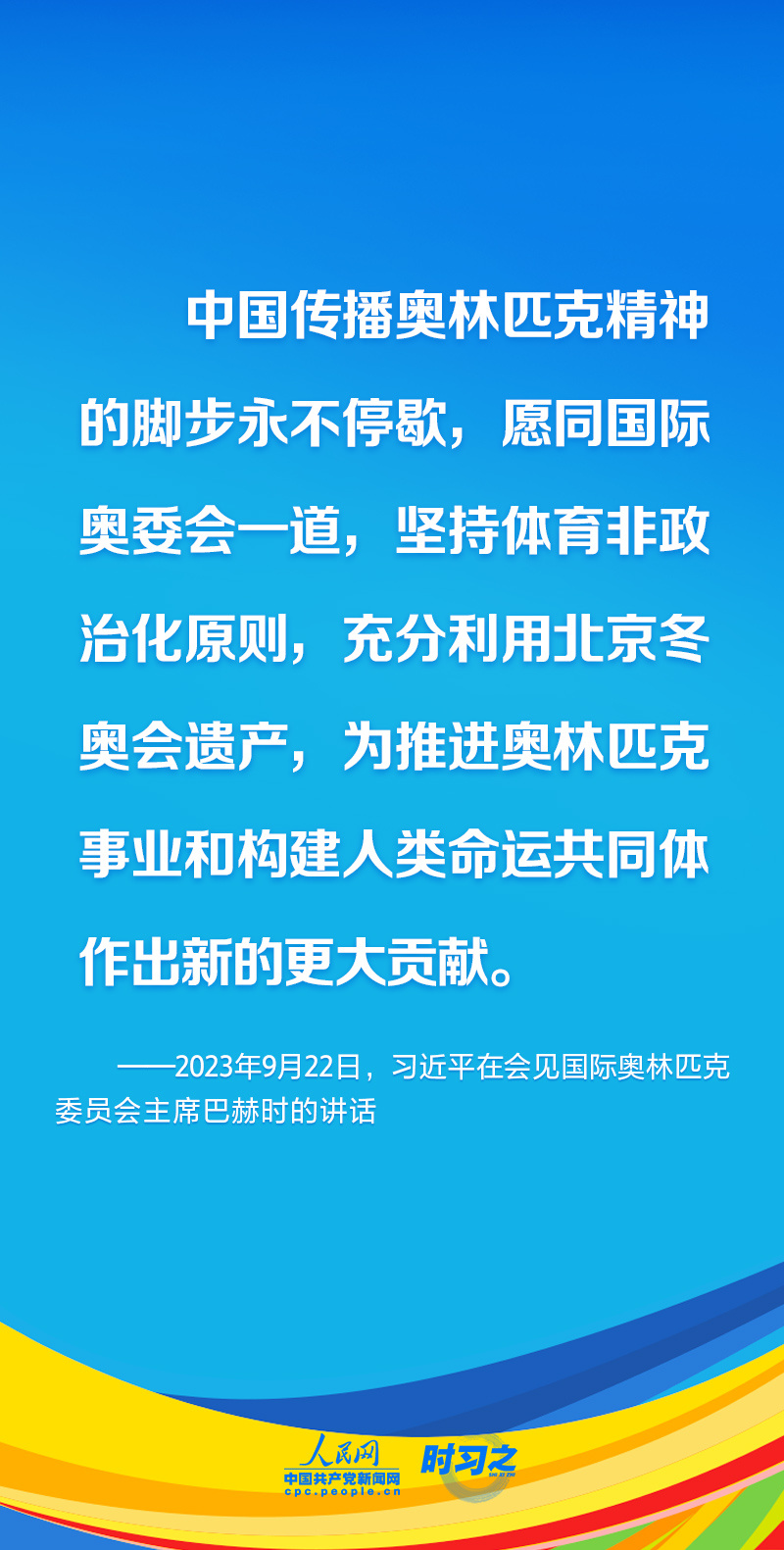 奥林匹克自诞生之日就代表了对和平友爱的永恒追求。中国一直以来积极参与国际奥林匹克事务,传承弘扬奥林匹克精神。习近平主席多次在不同场合强调践行奥林匹克宗旨,促进不同文明交流互鉴,共同构建人类命运共同体。