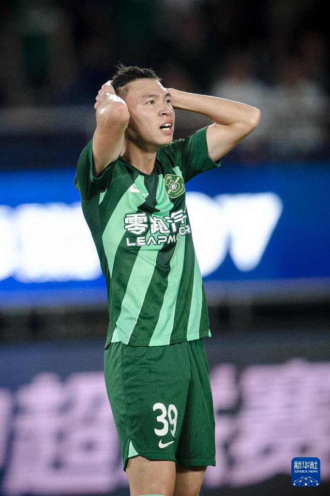 7月28日,浙江队球员王钰栋在比赛中错失进球机会后。新华社记者 江汉 摄
