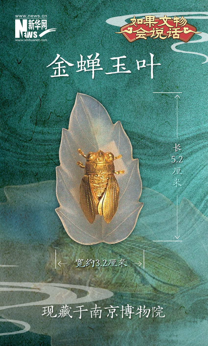 作为南京博物院镇院之宝之一,金蝉玉叶可谓是15世纪下半叶明代中期的杰作,同时也是目前国内出土的唯一一件“金蝉玉叶”。金蝉奏鸣,玉叶振动,正是金声玉振的艺术再现。它不仅说明了以“粗大明”著称的明代玉器有其精致细腻的一面,而且背后蕴藏明代社会文化的深厚内涵。