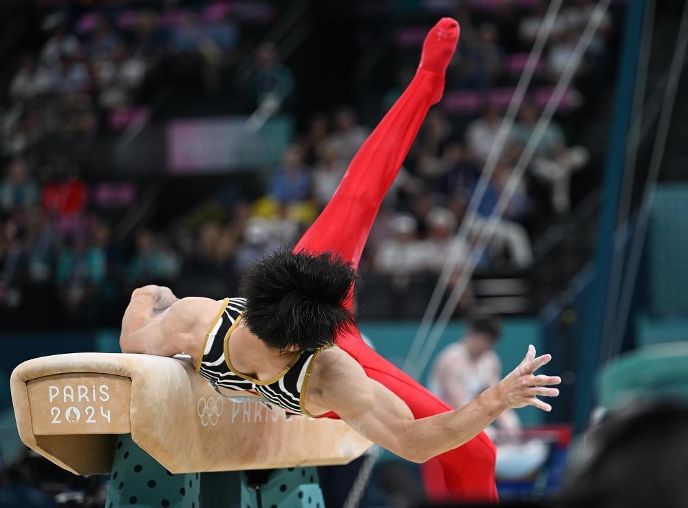 7月29日,在巴黎奥运会体操男子团体决赛中,中国队获得亚军。
