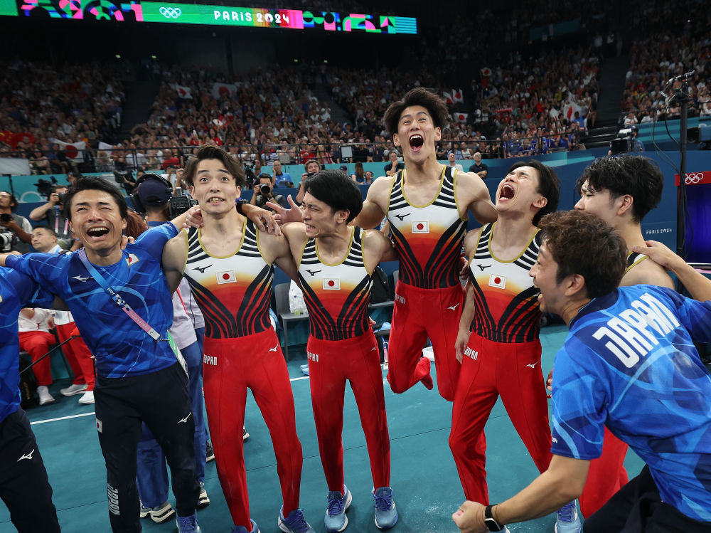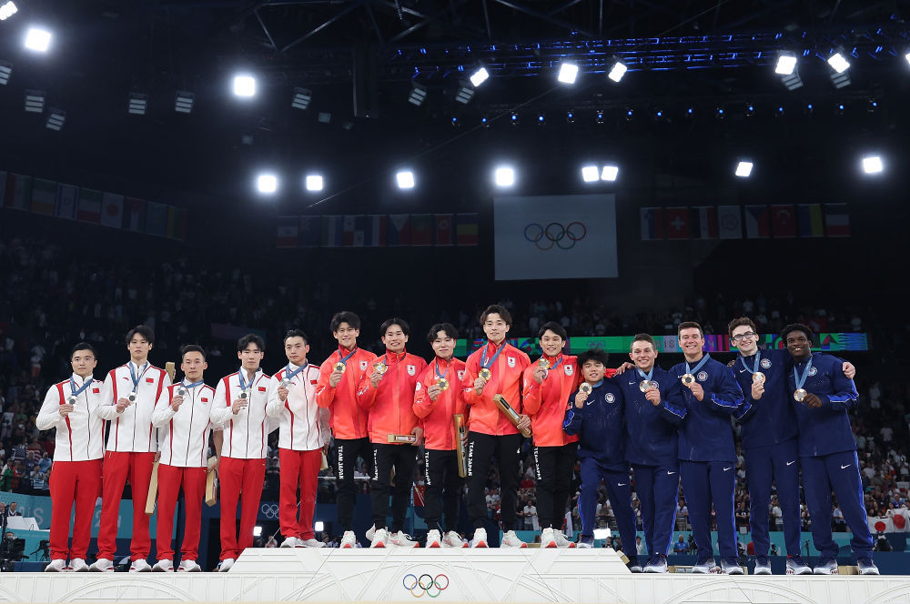 7月29日,在巴黎奥运会体操男子团体决赛中,日本队夺得冠军。中国队和美国队分获亚军、季军。