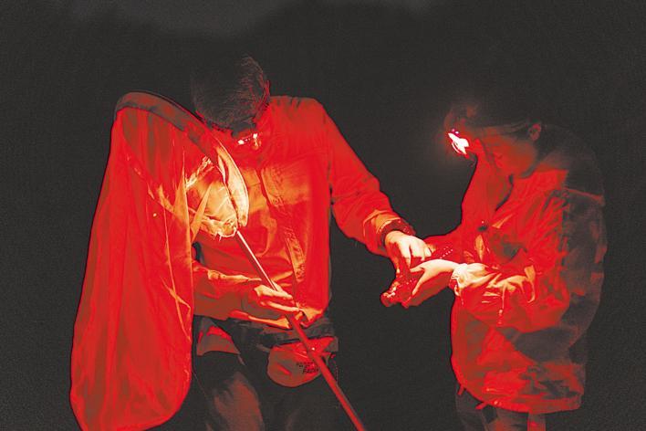 7月13日晚,付新华和研究助理朱馨蕾在通山县夏家湾采集萤火虫样本。