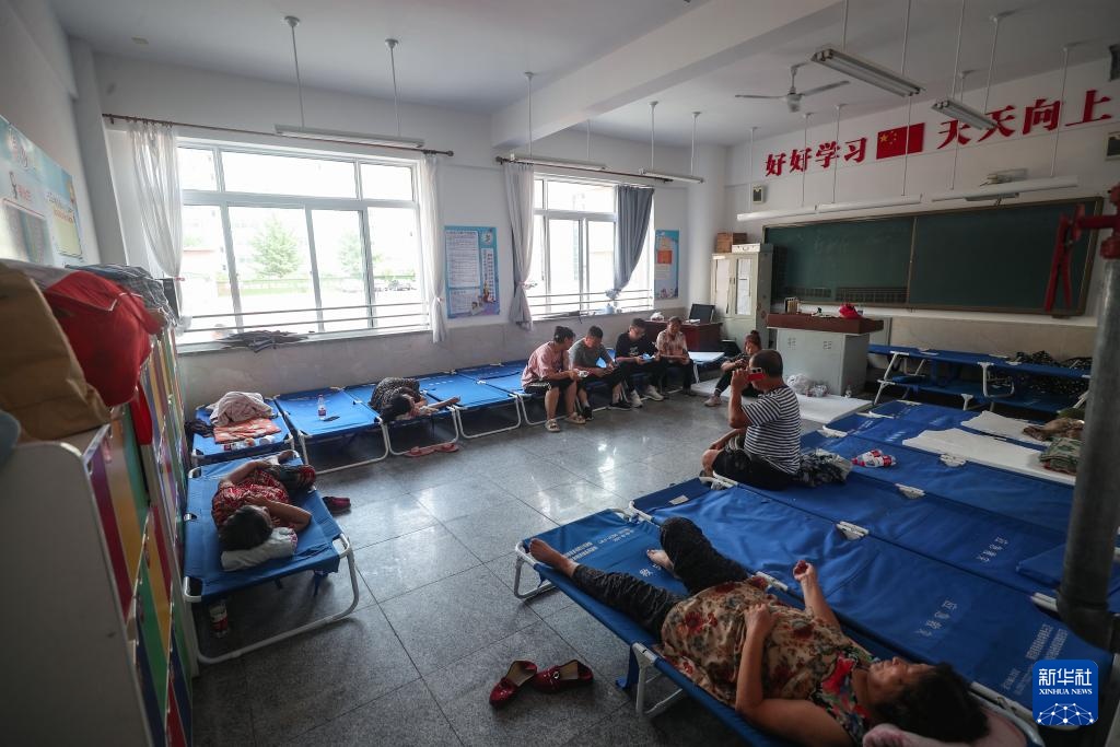 7月30日,转移群众在丹东市五纬小学临时安置点休息。新华社记者龙雷摄