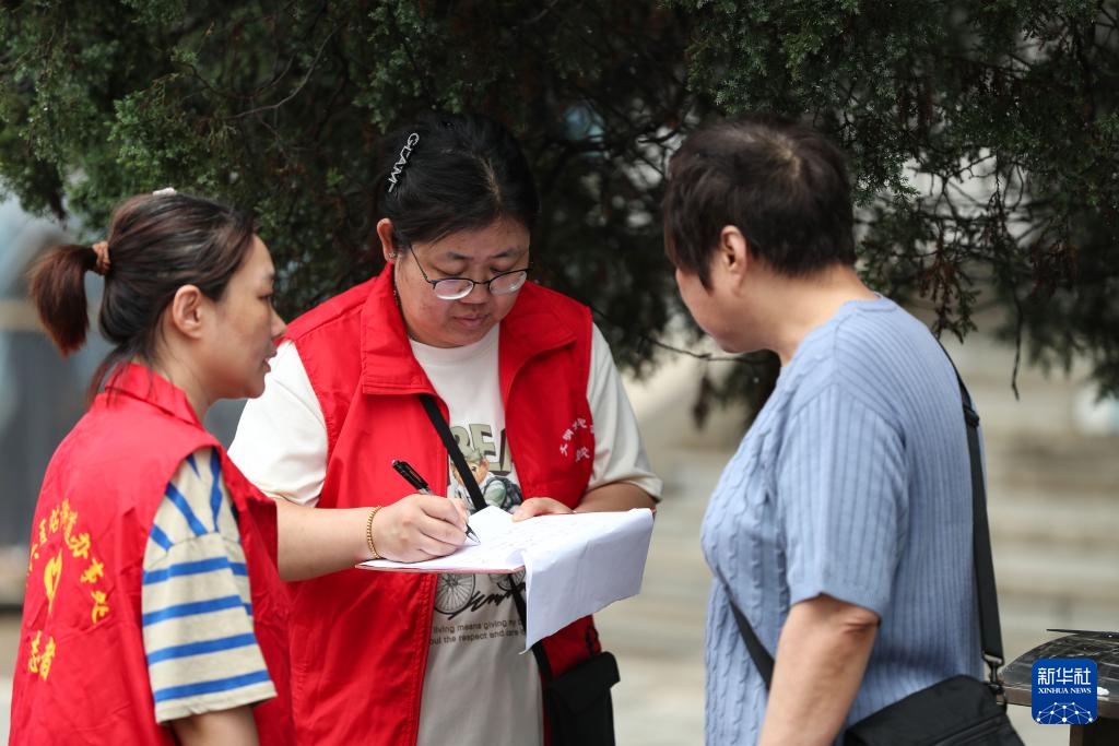 7月30日,在丹东市十纬路口岸坝门,工作人员为受困群众登记信息。新华社记者龙雷摄