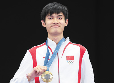当地时间7月29日,盛李豪在颁奖仪式上。 新华社记者 赵丁喆摄 |