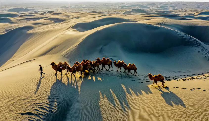 游客们在景区游玩不仅可以欣赏到原始的胡杨林、梭梭林等美丽的自然景观,还能感受到沙漠冒险的独特魅力,每年都有大量的游客及网络博主前来景区拍照打卡和直播。来自伊犁的抖音博主加勒恩·夏卡提今年暑期就跟随团队来到木特塔尔沙漠景区,用镜头记录下了驼铃悠扬、空旷苍茫的沙漠独特美景。