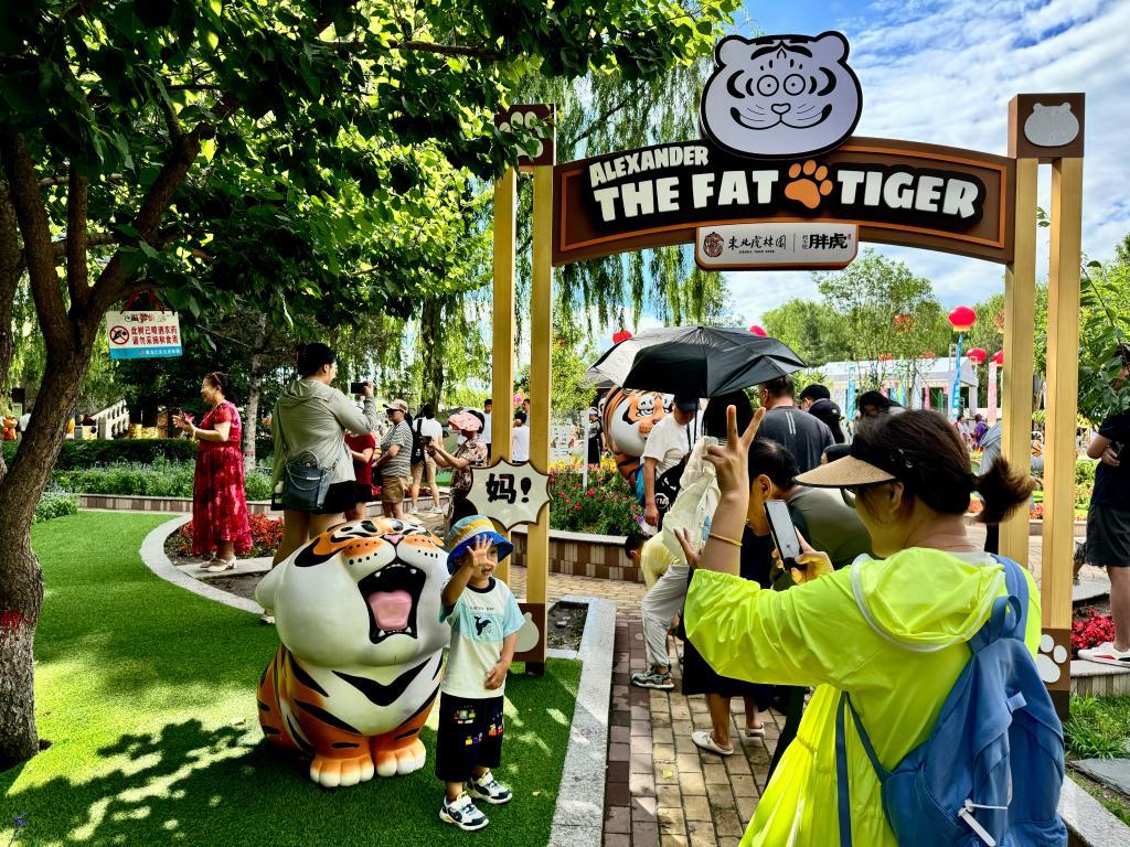 游客在黑龙江东北虎林园拍照。新华社记者 刘赫垚 摄