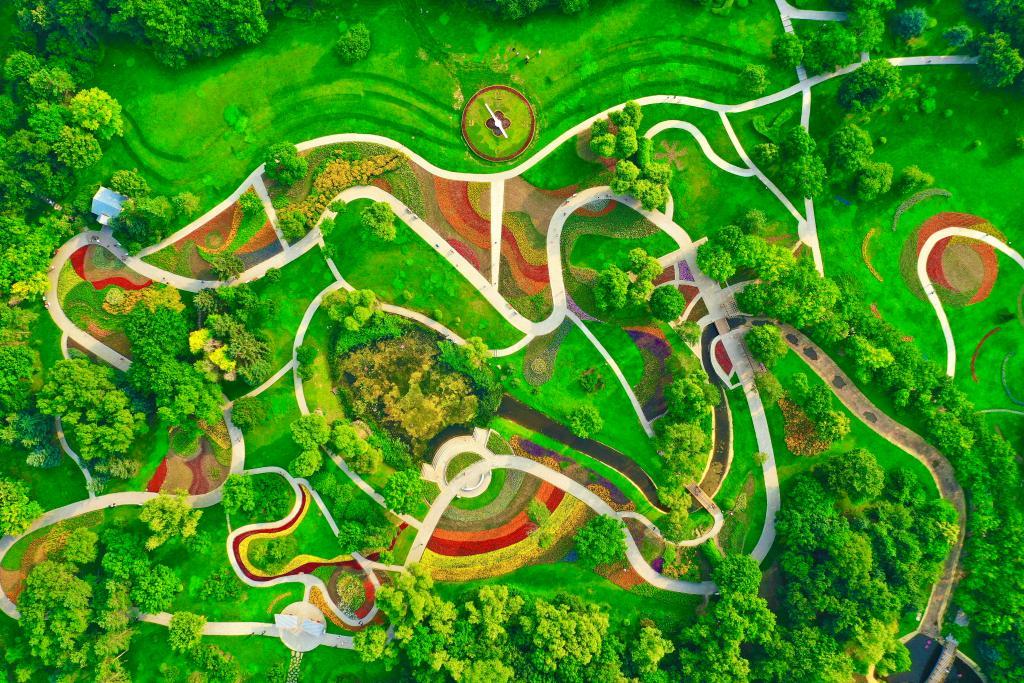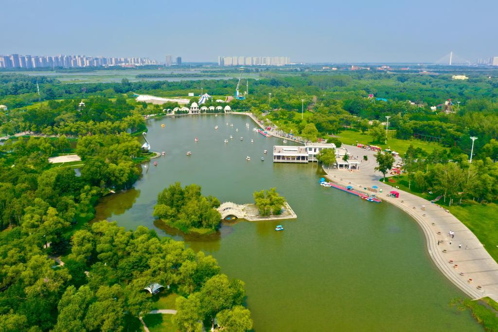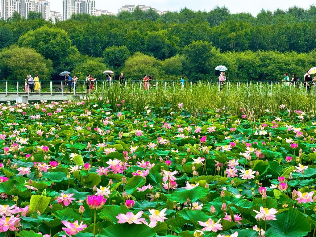 哈尔滨大剧院附近的荷花大面积开放。新华社记者 刘赫垚 摄