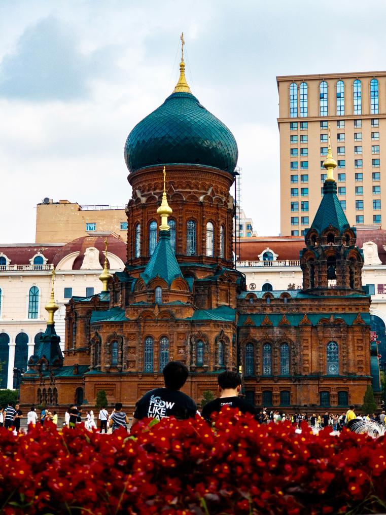 游客在索菲亚教堂前拍照。新华社发 张继泽 摄