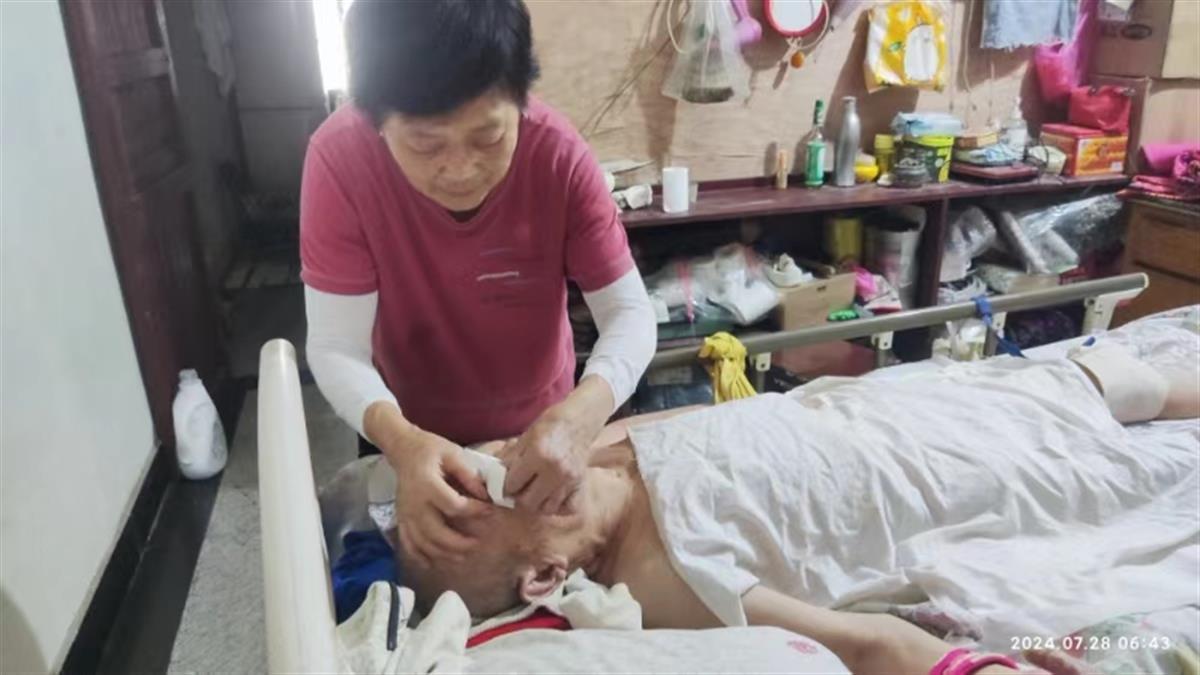 每天给丈夫翻五六次身、擦两次身子、喂三餐饭……在新洲区道观河风景区道观社区,有这样一位七旬妻子八年来不离不弃照顾瘫痪在床的丈夫,用辛勤的付出和默默的坚守,诠释着妻子对丈夫深深的爱。她就是道观社区72岁的居民童姣娥。