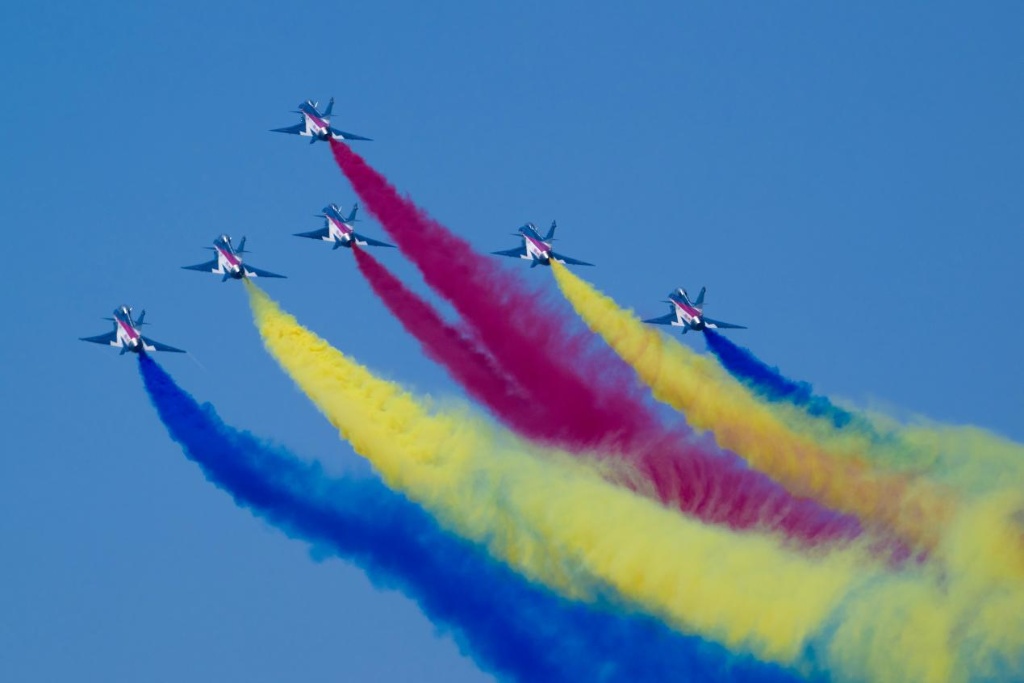 空军八一飞行表演队组建于1962年,当时称“空军护航表演大队”,1987年8月1日,正式启用“中国人民解放军空军八一飞行表演队”番号。组建60多年来,累计为170多个国家和地区的700余个代表团进行飞行表演。“朋友圈”越来越大,自2013年莫斯科“海外首秀”至今,空军八一飞行表演队已经10次飞出国门,赴俄罗斯、马来西亚、泰国、阿联酋、巴基斯坦、新加坡、沙特阿拉伯等7个国家进行飞行表演。