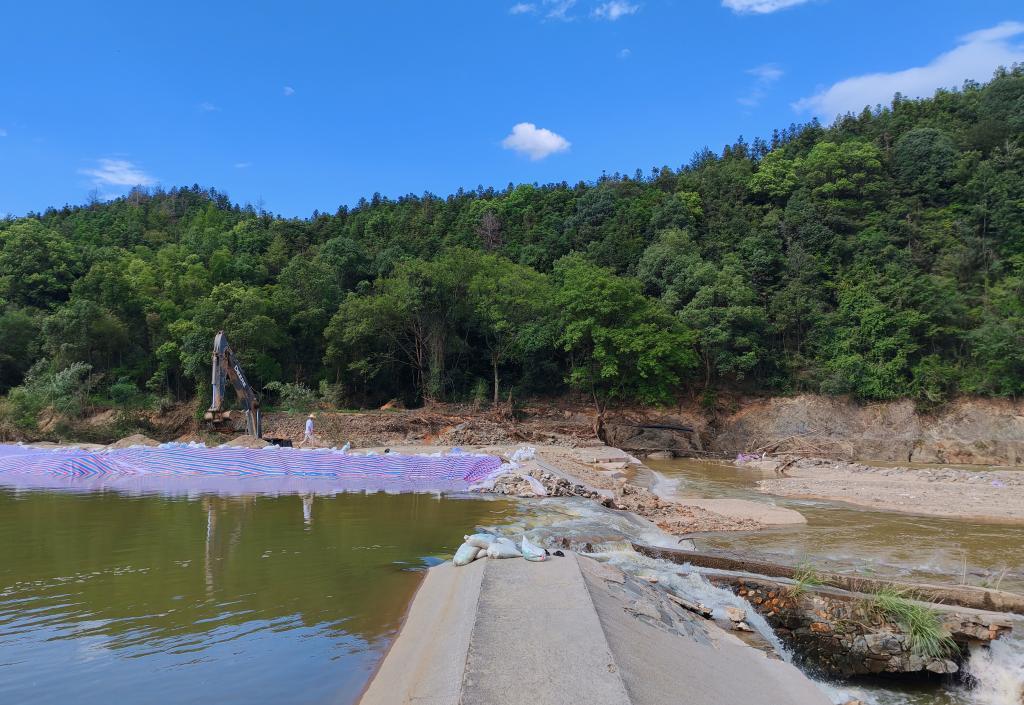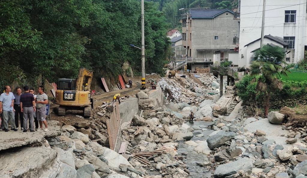 安徽省黄山市歙县绍濂乡岭口村修复水毁道路现场。(绍濂乡政府供图)