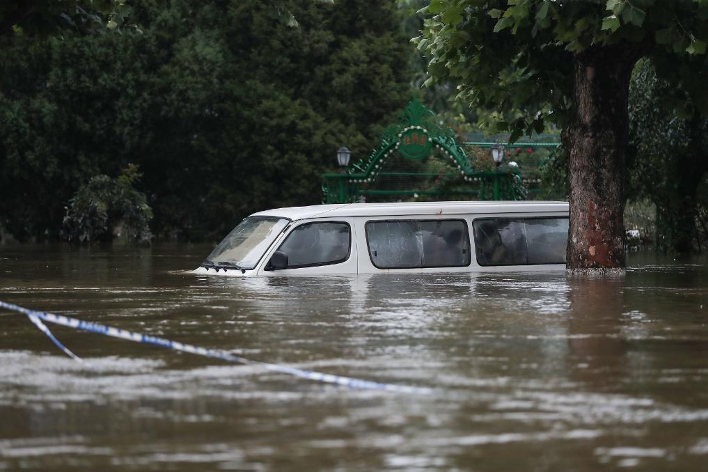 受上游来水和连续降雨影响,28日丹东市12座水库超汛限、5条河流超警戒。江水漫上岸堤,29日夜间鸭绿江公园、沿江主街水深已达2米,一片汪洋。