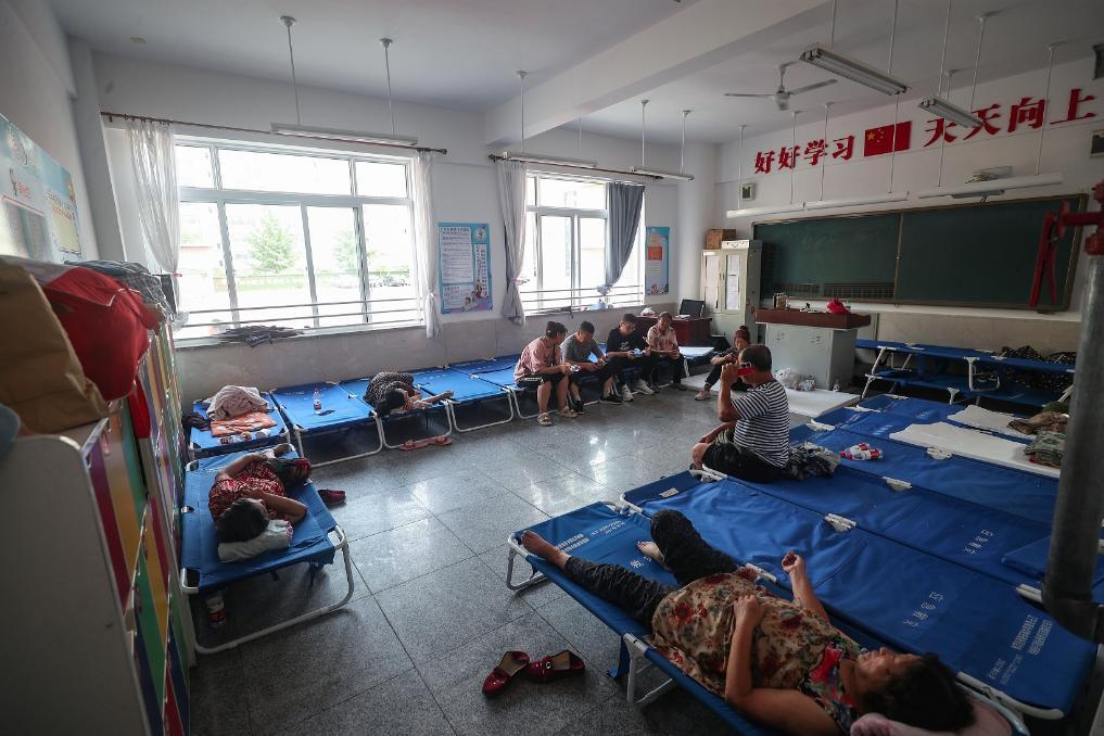 7月30日,被转移群众在丹东市五纬小学安置点休息。 新华社记者 龙雷 摄