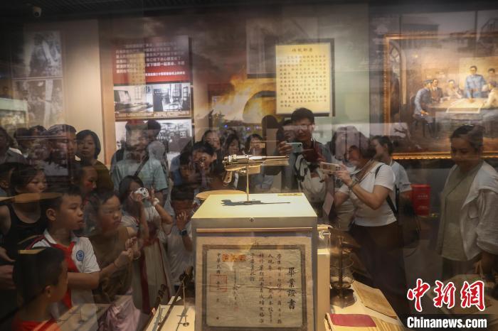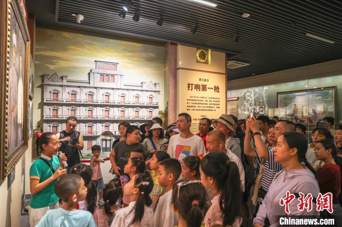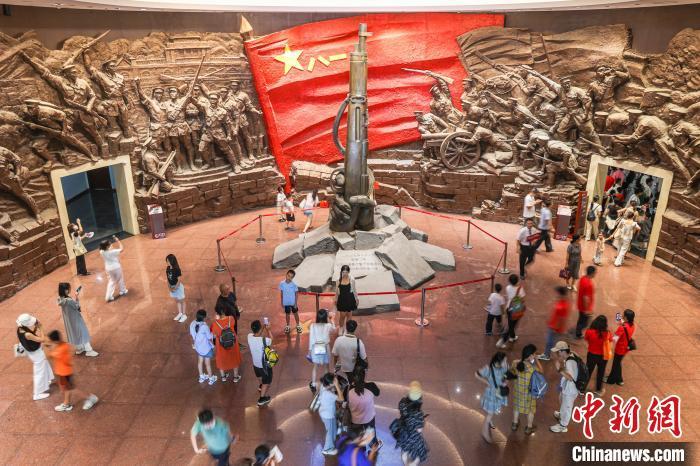 8月1日,“八一”建军节,江西南昌,不少游客走进南昌八一起义纪念馆参观游览。 南昌八一起义纪念馆是为纪念南昌起义而设立的专题纪念馆。图为众多游客在参观展览。中新社记者 刘力鑫 摄