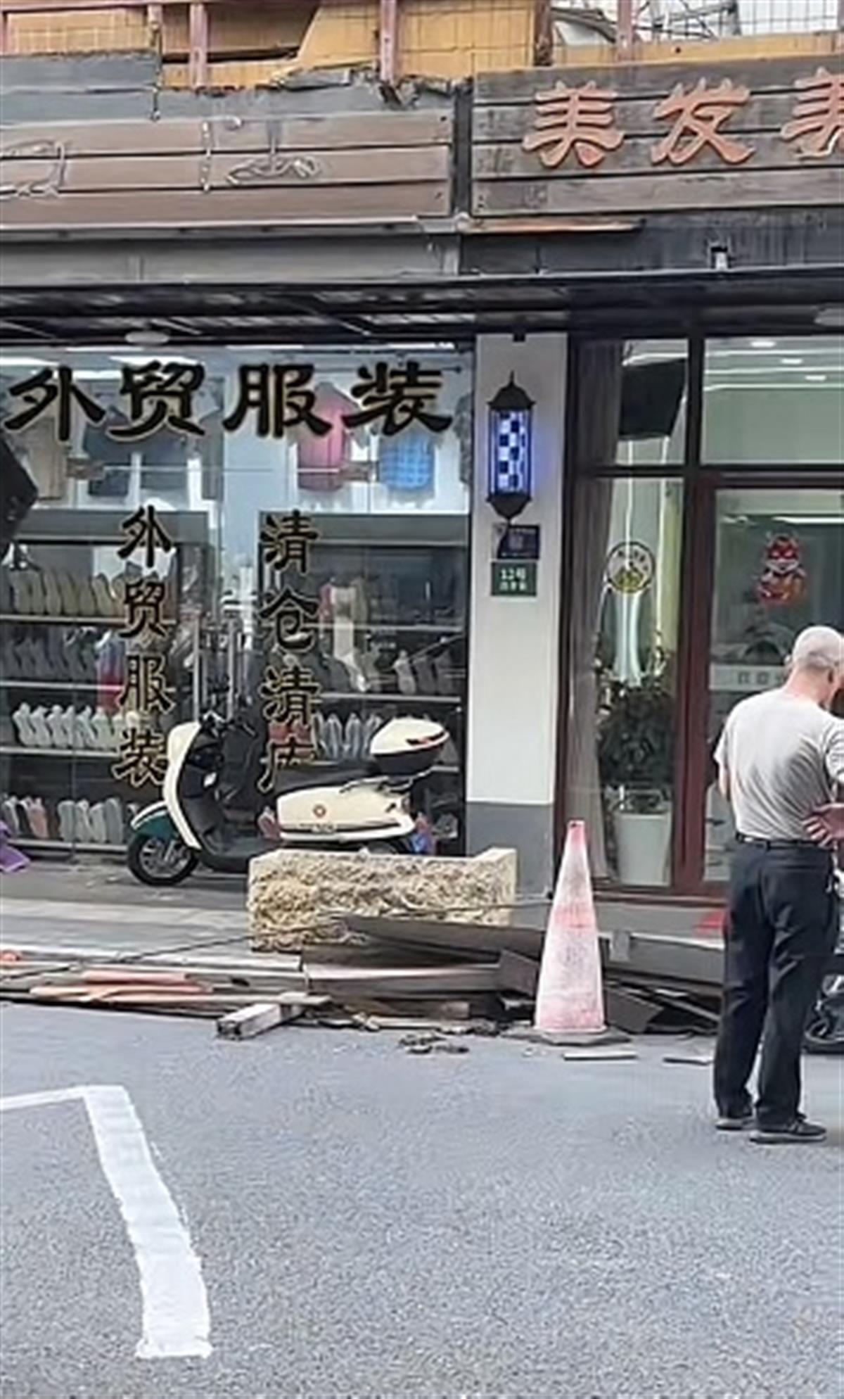 上海浦东新区西市街店招掉落(图源:新民晚报)