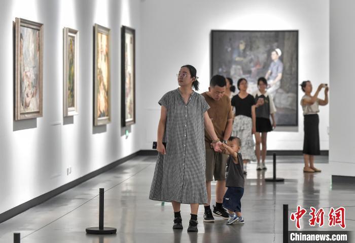 8月1日,新疆乌鲁木齐市,正在新疆美术馆举办的第四届中国新疆国际艺术双年展吸引众多市民前来参观。据介绍,本届双年展以“腹地脉动”为主题,设立了“数字驿站”“生态密码”“丝路智融”和“合力共振”4个主展单元,并特别设立平行展“共生之境——新疆百年美术的发生发展与当下艺术观察”。集中展出来自中国、意大利、德国、哈萨克斯坦等14个国家和地区艺术家的263组/件作品。中新社记者 刘新 摄 刘新 摄