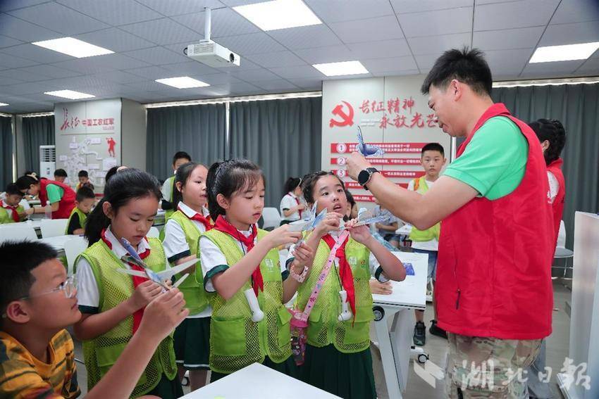 武汉文旅志愿者陈思颖说,“这次活动我们将科研创新和红色基因融会贯通,让孩子们在体会创造乐趣的同时,直观地感受祖国国防的强大。在未来,希望孩子们争做新时代的前浪,不断突破自我,勇攀高峰。”