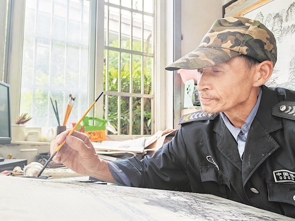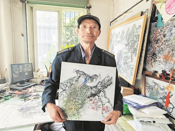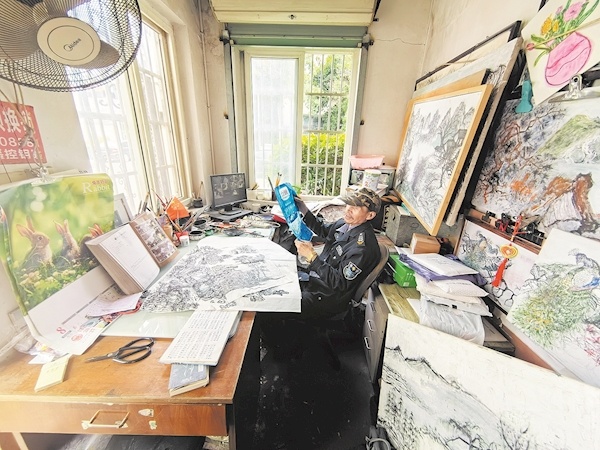 小区居民陈先生介绍,何法达负责小区安保、收发快递等工作。他待人热情,跟居民关系融洽。大家进出小区时,有时看到他正在埋头作画,都不会打扰他。