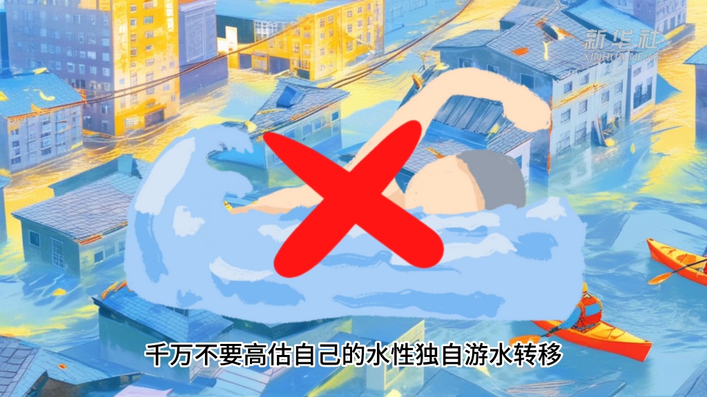 如果发现已经被洪水包围,请尽可能地抓住木板、木床等物品做水上转移,千万不要高估自己的水性独自游水转移!