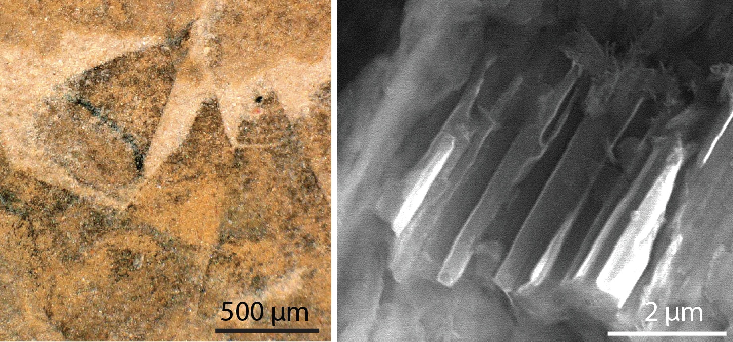 图三:寒武纪多刺世山虫的锥形骨板和细微管状构造