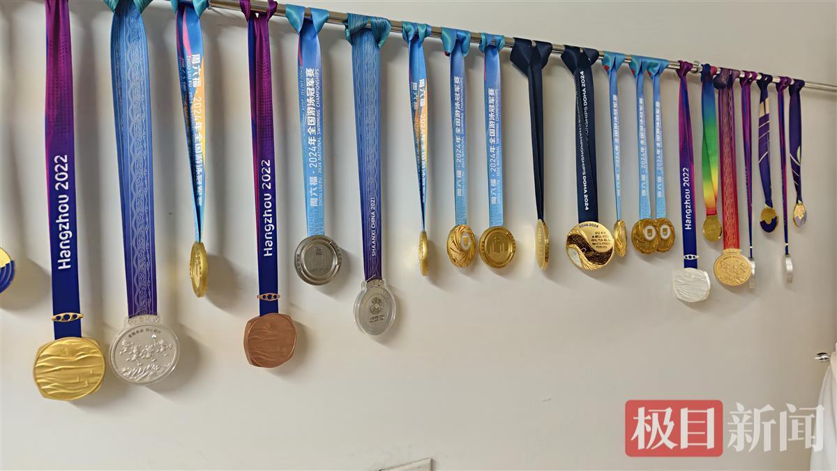 潘展乐获得的部分奖牌 (极目新闻记者拍摄)