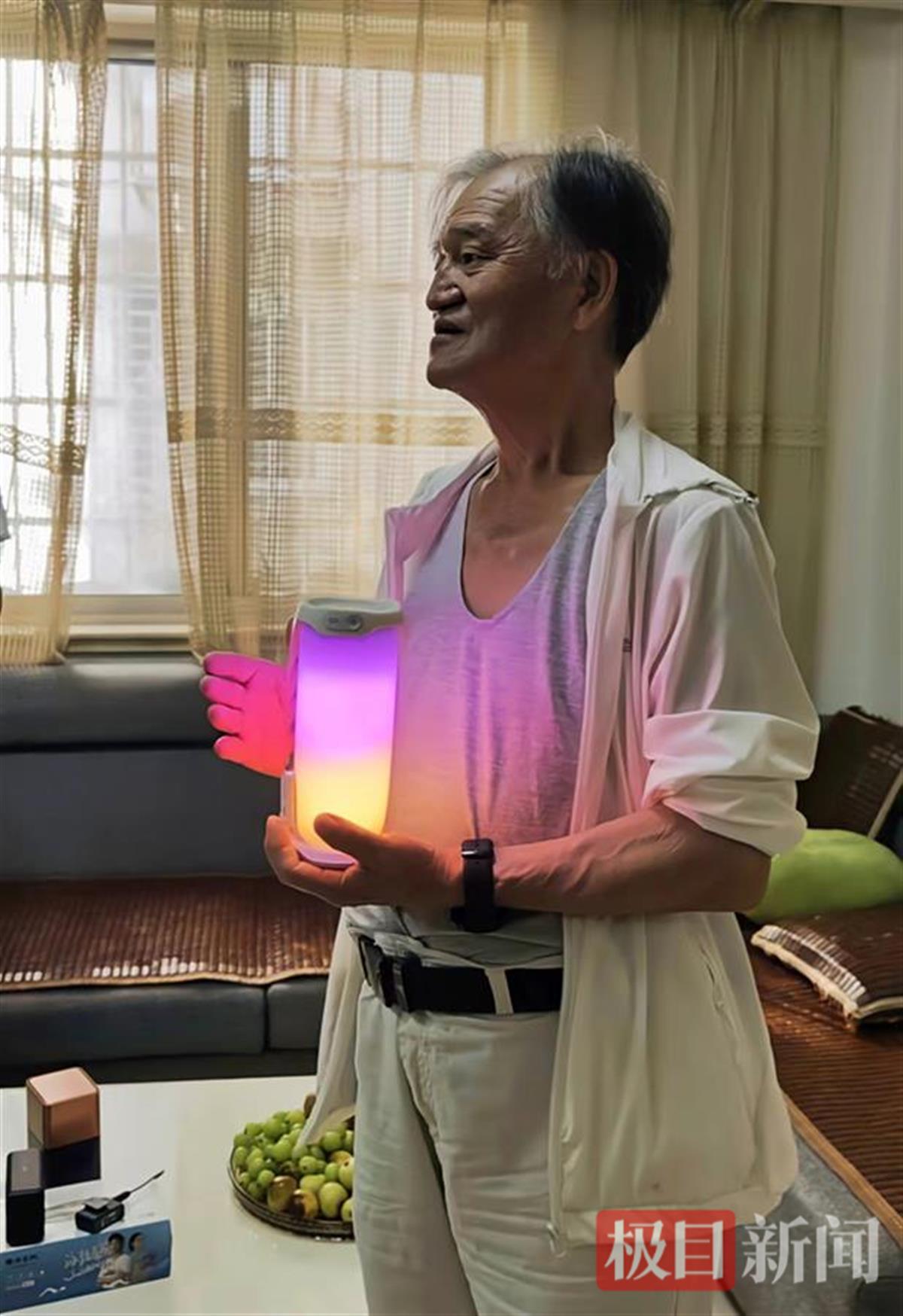 聊天间隙,潘爷爷还特意跑回卧室抱出来一个会发光的音响向大家“炫耀”。“好看吧,这是乐乐给我买的。当时乐乐有一个,我就夸了句这个音响不错,结果第二天他给也我买了一个。”潘爷爷说,他现在用的手机、戴的手表都是潘展乐送的。
