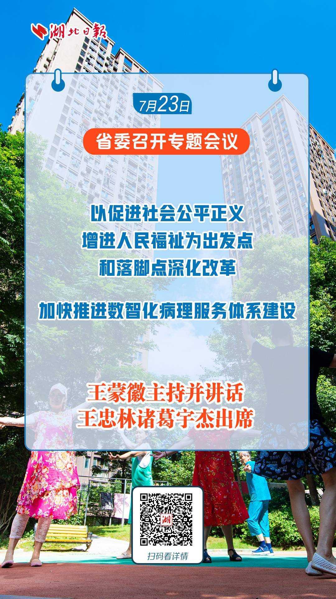 湖北日报讯 (记者张进、王馨)7月23日,省委书记、省人大常委会主任王蒙徽主持召开省委专题会议,听取数智化病理服务体系建设情况汇报,研究部署下一步重点任务。省委副书记、省长王忠林,省委副书记诸葛宇杰出席会议。