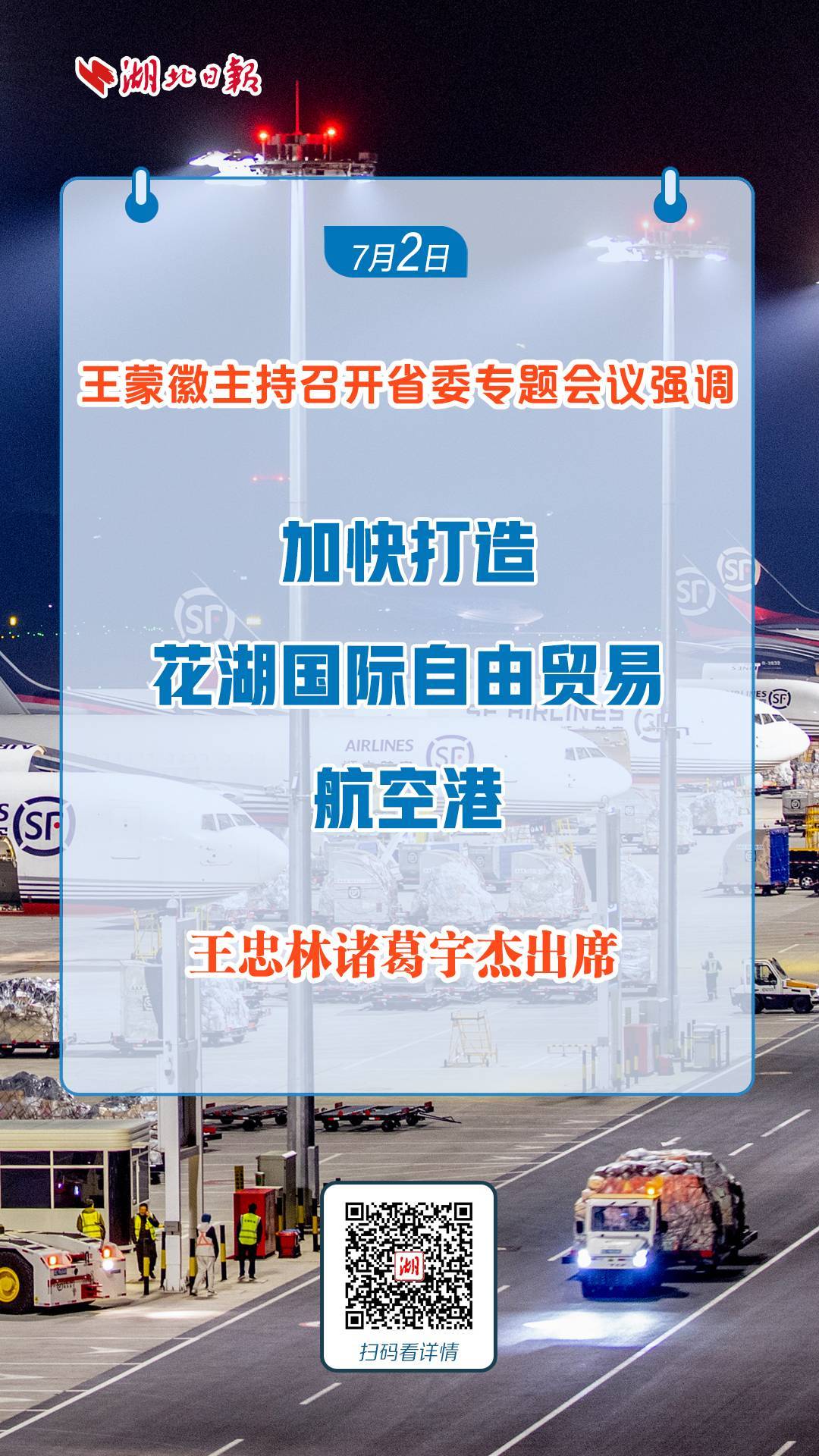 湖北日报讯 (记者张进、王馨)7月2日,省委召开专题会议,听取花湖机场建设运营情况汇报,研究部署下一步重点任务。省委书记、省人大常委会主任王蒙徽主持会议并强调,要深入学习贯彻习近平总书记关于加快构建新发展格局的重要论述和关于湖北工作的重要讲话、重要指示批示精神,以拼搏赶超的状态和举措,加快打造花湖国际自由贸易航空港,努力建设国内大循环的重要节点和国内国际双循环的重要枢纽。