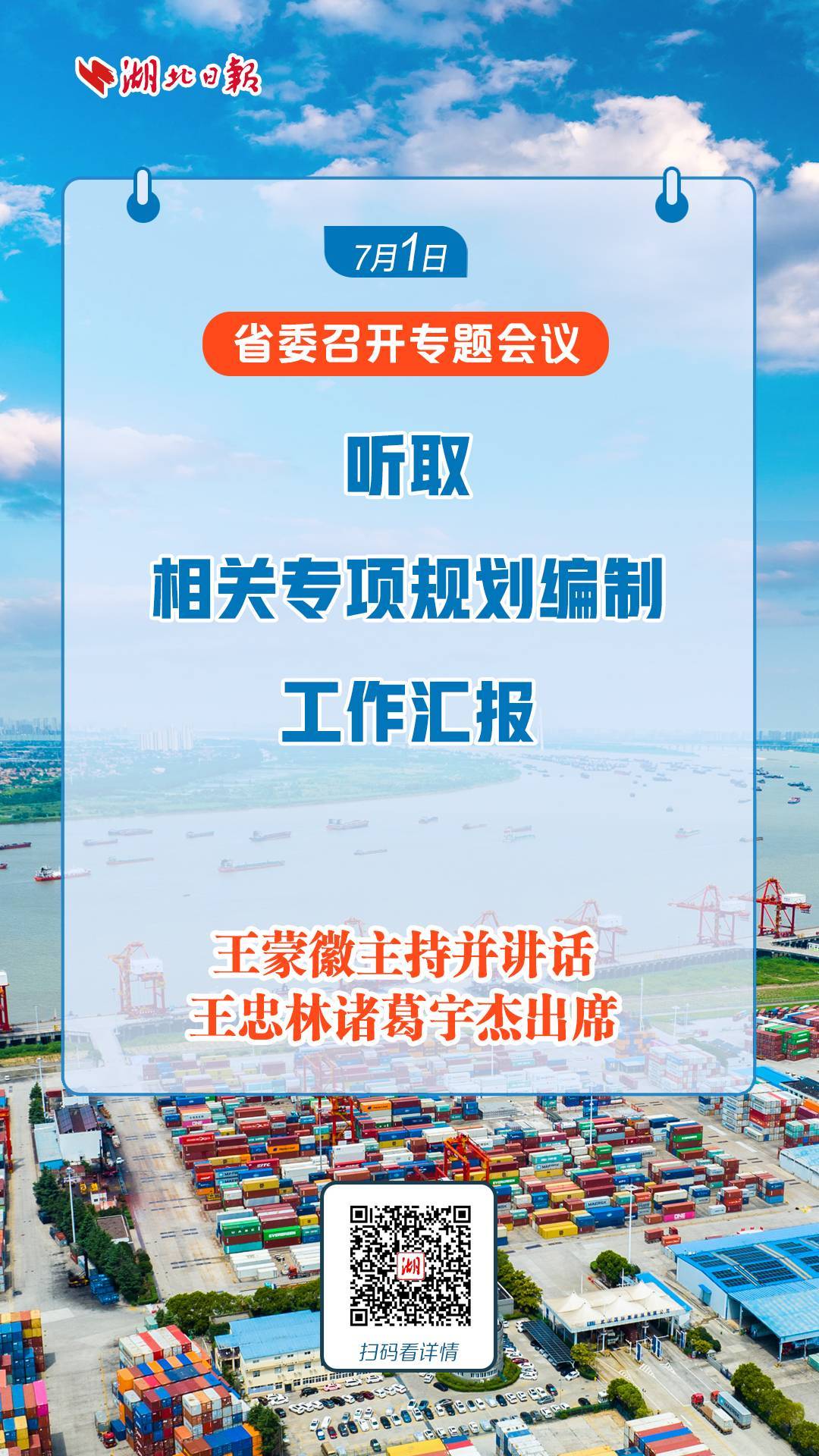湖北日报讯 (记者张进、王馨)7月1日,省委召开专题会议,听取我省铁路网中长期布局、以长江黄金水道为核心的集疏运体系建设、新型电力系统布局等规划编制情况汇报,研究部署下一步重点任务。省委书记、省人大常委会主任王蒙徽主持会议并讲话。省委副书记、省长王忠林,省委副书记诸葛宇杰出席。