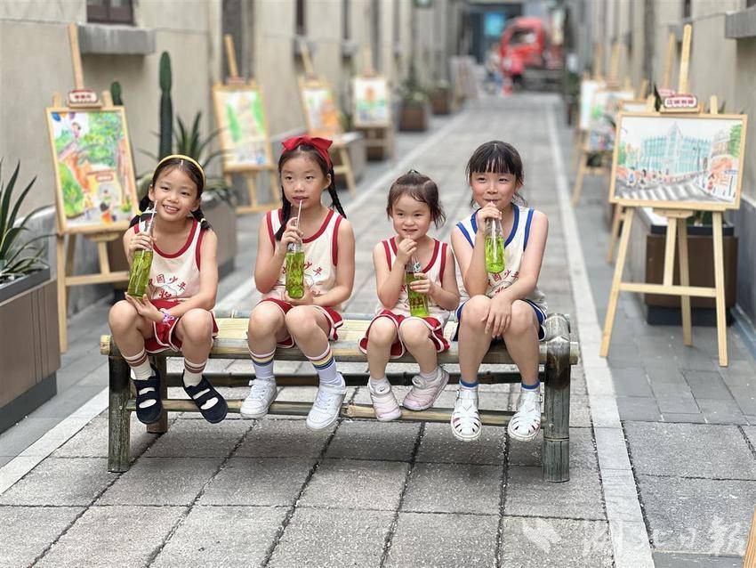 市集中的“武汉百年文化建筑儿童画展”形成了一道独特的风景线,现场展出了以武汉百年文化建筑为主题的优秀儿童画作。小朋友们用自己的视角描绘了黄鹤楼、东湖凌波门、保元里、巴公房子等武汉历史地标,用稚嫩的笔触勾勒出武汉的岁月变迁。许多家长专程带着孩子前来观赏并参与互动,在热闹的夜市里感受武汉的文化魅力和底蕴。
