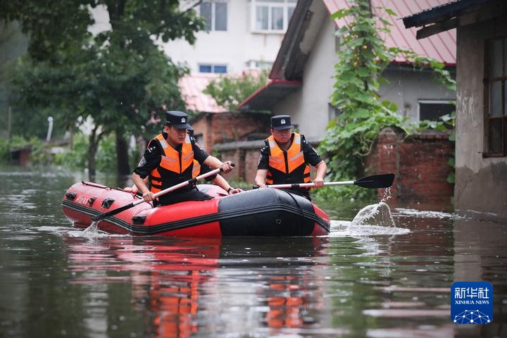 7月31日,太平湾边境派出所的民警在望江村水淹房屋区内巡查。新华社记者 龙雷 摄