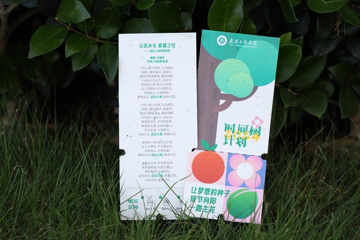 今年,该校还为每一名新生送上“时间树计划”种子卡,寓意让梦想的种子拔节向阳、一路生花。纸张印制过程中,将虞美人、太阳花、满天星、小雏菊、薰衣草等多种植物的种子随机与纸浆充分混合,在适当的环境下,纸张能够发芽,或许之后还能开花。种子卡的正面印有种子、花朵、果实、大树元素,象征蓬勃生长的过程;反面印有校歌,其中歌词“静待花开”与种子卡的寓意相呼应。