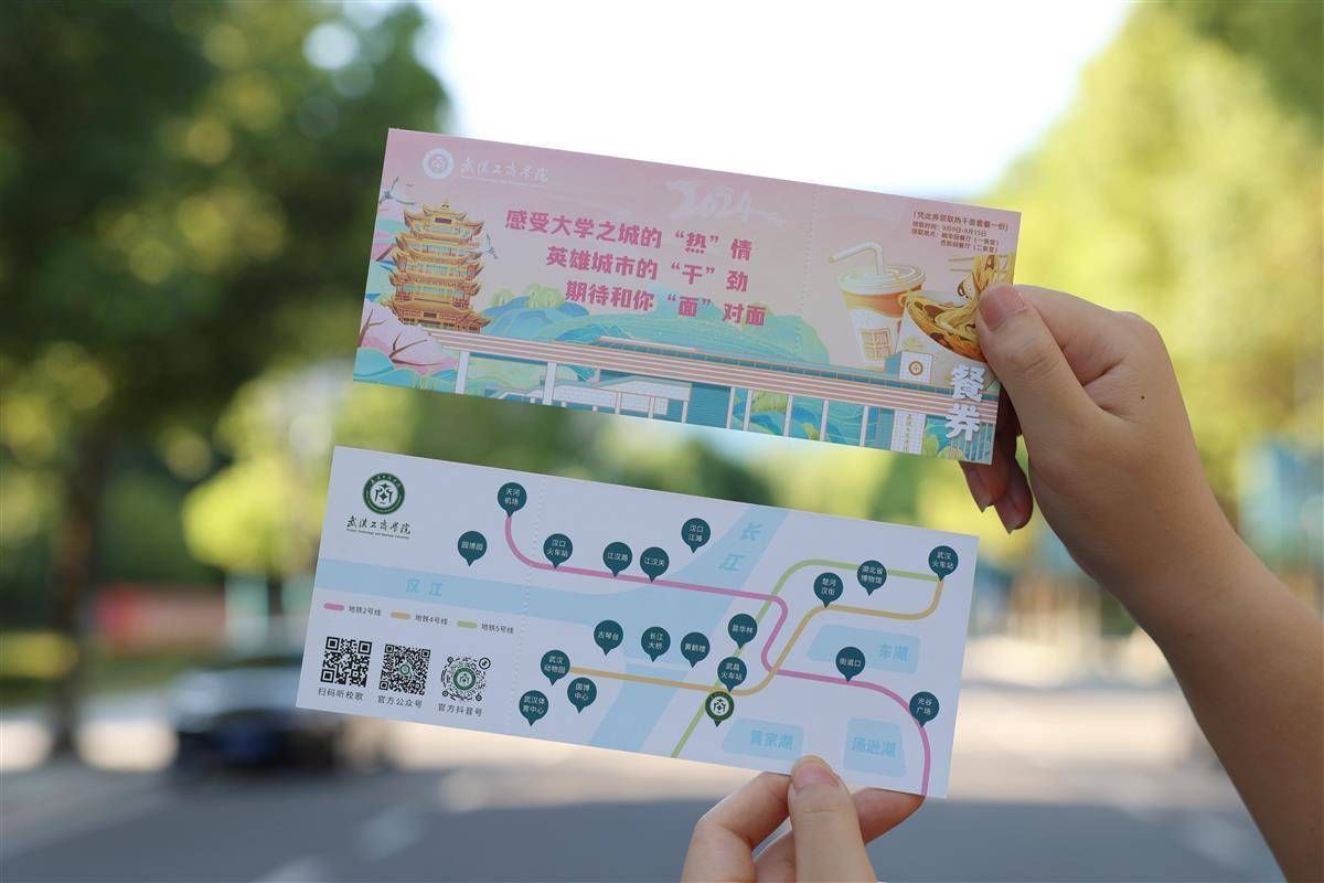 该校继去年之后,再次请全体新生品尝武汉特色美食热干面。2024级新生入学后,9月9日至15日期间可凭餐券前往校内餐厅免费领取一份热干面套餐,其中包含热干面和豆浆。餐券设计上,融入了武汉市著名景点黄鹤楼、特色美食热干面及该校标志性建筑南门等元素。