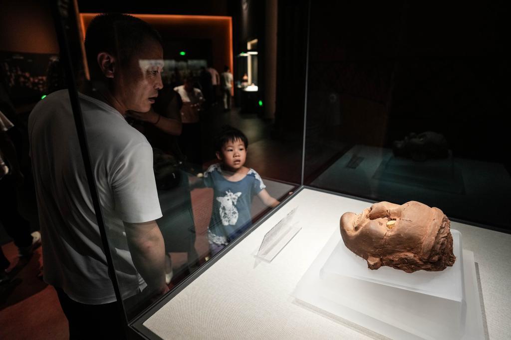 8月3日,参观者在牛河梁遗址博物馆内观展。新华社记者 潘昱龙 摄