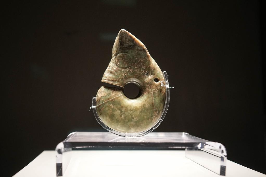 这是8月3日在牛河梁遗址博物馆拍摄的展品玉猪龙。新华社记者 潘昱龙 摄