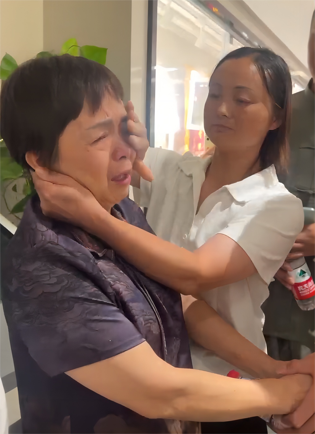 杨欢为母亲拭去泪水。
