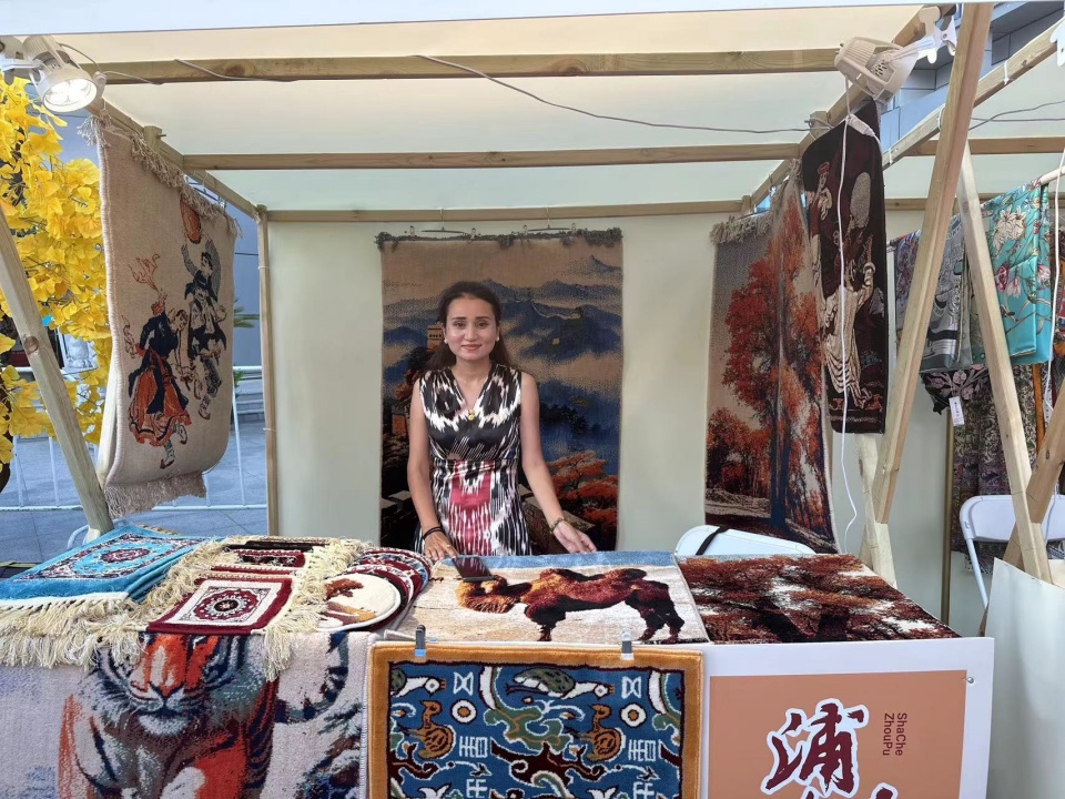 维吾尔族姑娘阿斯耶在“浦·莎乐巴扎”。新华网 史依灵 摄