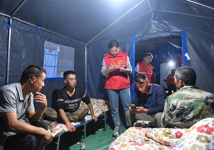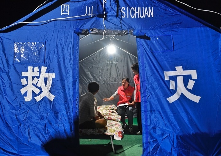 3日晚,在四川康定姑咱镇的郎鼓小区安置点,电力抢险队经过十几个小时的奋战抢通电源,刚刚入夜,16顶应急救灾帐篷里灯依次被点亮。折叠床上铺着整齐的被褥,一些转移安置的老人在床头盘腿而坐,当地干部和志愿者在有序开展各种服务。