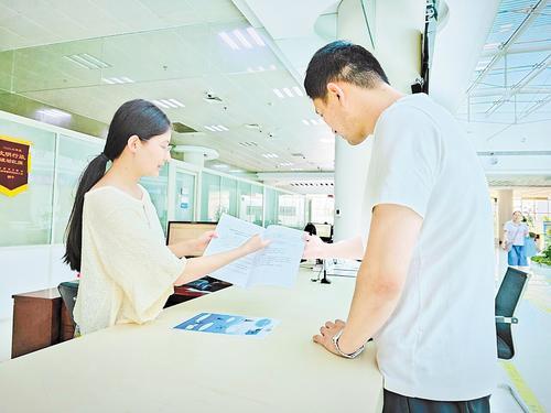 近日,沧州市行政审批局工作人员(左)正在为办事群众讲解代位行使住所(经营场所)资源释放改革举措。记者 袁铮摄