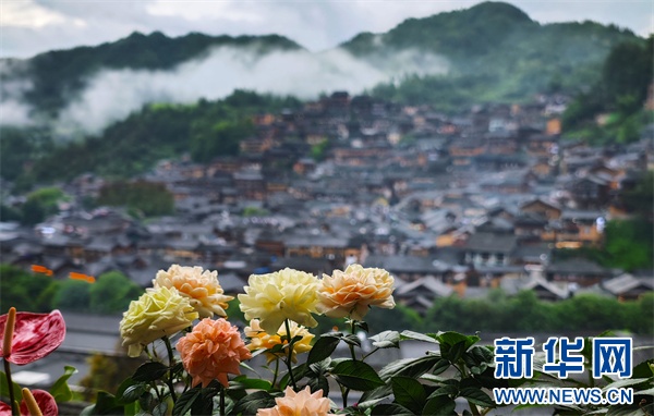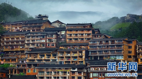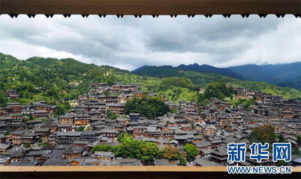从民宿客房视角看西江千户苗寨风光。新华网 卢志佳 摄
