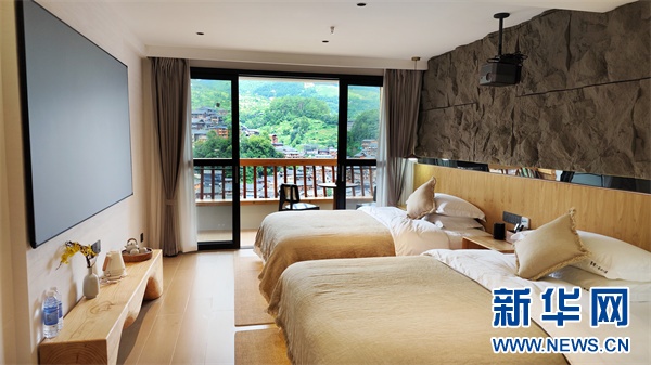 西江千户苗寨览境延山一隅民宿客房。新华网 卢志佳 摄
