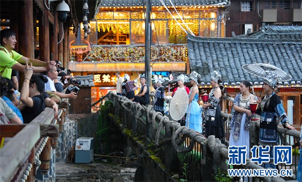 7月31日,游人如织的西江千户苗寨。新华网 卢志佳 摄